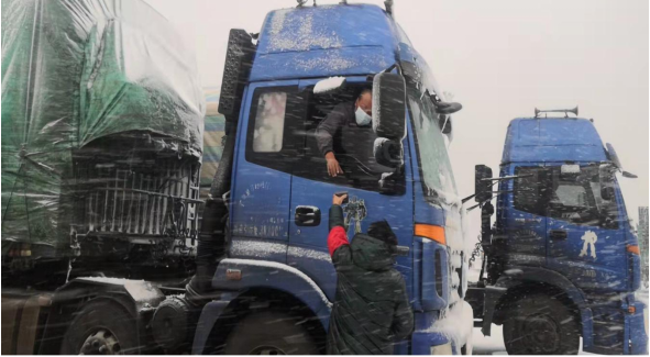 一個個暖心的微笑,一句句關(guān)切的問候,一杯杯熱騰的開水,瞬間驅(qū)散了滯留司乘人員的寒意,也緩減了大家焦急的情緒,讓大家在寒冷的風(fēng)雪中感受到了貼心的溫暖。