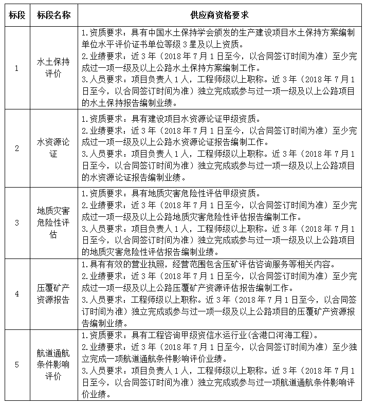 (三)標(biāo)段劃分:5個標(biāo)段,1標(biāo)段水土保持評價、2標(biāo)段水資源論證、3標(biāo)段地質(zhì)災(zāi)害危險性評估、4標(biāo)段壓覆礦產(chǎn)資源、5標(biāo)段航道通航條件影響評價。