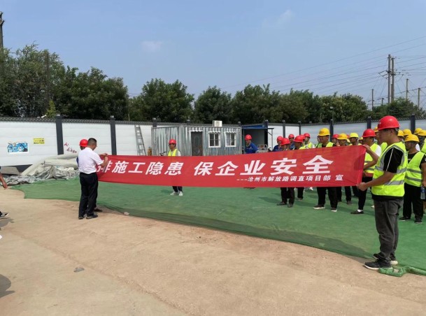 2022年8月是路橋公司第一個“安全生產(chǎn)月”。為進一步樹牢安全發(fā)展理念,提升全員安全意識和素質(zhì),提高整體安全生產(chǎn)管理水平,防范和遏制重大事故發(fā)生,8月4日上午,滄州路橋一分公司在解放路調(diào)直(長蘆大道-石港路)工程施工現(xiàn)場召開以“排施工隱患,保企業(yè)安全”為主題的 “安全生產(chǎn)月”活動啟動儀式,路橋公司副總經(jīng)理孫竹立、安全部和一分公司相關(guān)負責人、現(xiàn)場施工人員參加本次活動。