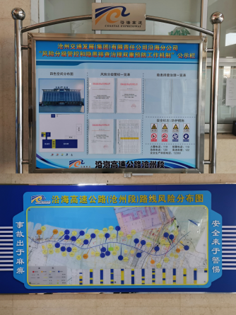 為全面建立制度健全、職責(zé)明晰、運行規(guī)范、管控有效的“雙控”機制,沿海分公司堅持關(guān)口前移、源頭管控、預(yù)防為主、綜合治理的原則,建立健全了安全風(fēng)險分級管控和隱患排查治理工作的相關(guān)制度和標(biāo)準(zhǔn)規(guī)范,完善落實了安全風(fēng)險的辨識、評估、分級、管控等各環(huán)節(jié)工作責(zé)任及管理措施,于12月底圓滿完成了“雙控”機制建設(shè)工作。一是成立領(lǐng)導(dǎo)小組。成立了以沿海分公司經(jīng)理為組長,機關(guān)各部門、各基層單位負(fù)責(zé)人組成的“雙控”機制建設(shè)工作領(lǐng)導(dǎo)小組,并積極組織收費、養(yǎng)護、機電、財務(wù)、稽查、安全等各部門及一線職工全員參與建設(shè)工作,形成主要領(lǐng)導(dǎo)全面負(fù)責(zé)、分管負(fù)責(zé)人具體落實、相關(guān)人員齊抓共管、全員共同參與的良好局面。二是建立健全“雙控”工作制度。沿海分公司編制了《沿海分公司“雙控”機制建設(shè)指導(dǎo)手冊》,建立健全了《安全生產(chǎn)風(fēng)險管控與隱患排查整治管理制度》《安全生產(chǎn)風(fēng)險動態(tài)監(jiān)控及預(yù)警制度》《風(fēng)險辨識公示制度》《安全生產(chǎn)考核獎懲制度》《安全教育培訓(xùn)制度》及《全員安全生產(chǎn)責(zé)任制制度》六項“雙控”工作管理制度,明確了全員安全生產(chǎn)工作職責(zé),確定了安全風(fēng)險和隱患的類別、評估分級方法和依據(jù),規(guī)范了雙控工作的開展與運行機制,為沿海分公司完善雙控工作、形成長效預(yù)防機制指明了方向。三是開展全面風(fēng)險辨識。結(jié)合本單位實際情況,對生產(chǎn)過程中人、物、環(huán)境、管理等四方面因素開展全面安全風(fēng)險辨識和隱患排查,建立了沿海分公司崗位風(fēng)險辨識表、風(fēng)險管控信息臺賬、事故隱患排查清單、隱患排查治理臺賬。采用DLEC法進行評估打分,確定低風(fēng)險(藍(lán)色)690項,一般風(fēng)險(黃色)125項,較大風(fēng)險(橙色)10項,重大風(fēng)險(紅色)0項,并對分級后的安全風(fēng)險制定相應(yīng)的防控措施。四是編制風(fēng)險分布圖及風(fēng)險告知卡。按照風(fēng)險等級,繪制了四色風(fēng)險分布圖及崗位風(fēng)險告知卡,標(biāo)明主要安全風(fēng)險及管控措施、應(yīng)急措施、責(zé)任人及聯(lián)系方式等,共制作風(fēng)險分布圖7幅,上墻風(fēng)險告知卡143塊,車內(nèi)風(fēng)險告知卡21塊。