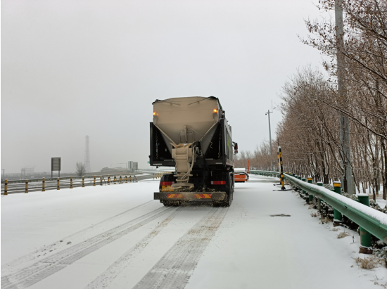 自21日至23日,沿海高速全線普降大雪,我分公司充分分析惡劣天氣情況預(yù)警,圍繞“早準(zhǔn)備、早部署、早介入”的工作目標(biāo),圓滿完成了除雪保暢任務(wù)。一是提前啟動(dòng)應(yīng)急預(yù)案,開展了融雪劑清點(diǎn)裝車、設(shè)備提前試車熱車、重點(diǎn)路段先期撒布等工作。二是充分發(fā)揮運(yùn)營(yíng)單位與高速交警的聯(lián)勤協(xié)作機(jī)制。與高巡密切配合,不但交叉錯(cuò)時(shí)巡邏、信息共享,而且為了提高除雪撒布的高效和安全,除雪作業(yè)由警車前方開道,養(yǎng)護(hù)車輛后方預(yù)警,真正實(shí)現(xiàn)了快速反應(yīng)、高效處治的目標(biāo)。截止23日,共計(jì)消耗融雪劑45噸,出動(dòng)警車10臺(tái)次、巡查車12臺(tái)次、養(yǎng)護(hù)預(yù)警車8臺(tái)次、除雪車8臺(tái)次、作業(yè)人員36人次。除雪保暢期間,未發(fā)生交通事故,未出現(xiàn)車輛故障情況,最大限度地保障了行車安全。