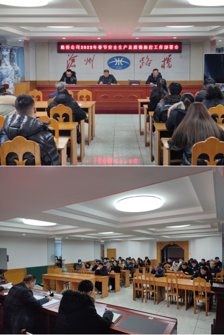 為全面做好2022年春節(jié)、“兩奧會(huì)”、“兩會(huì)”期間安全生產(chǎn)工作和疫情防控工作,1月28日上午,滄州路橋工程有限責(zé)任公司召開安全生產(chǎn)工作及疫情防控部署會(huì),曹艷明董事長(zhǎng)首先組織學(xué)習(xí)了河北省高級(jí)人民法院、河北省人民檢察院、河北省公安廳《關(guān)于依法從嚴(yán)查處妨害疫情防控違法犯罪行為的通告》,要求全體員工切實(shí)提高思想站位,遵守通告要求,履行疫情防控責(zé)任,隨后傳達(dá)了《全市“迎冬奧保春節(jié)兩會(huì)”安全生產(chǎn)攻堅(jiān)行動(dòng)方案》、《河北省環(huán)境信息依法披露制度改革實(shí)施方案》、集團(tuán)《關(guān)于做好2022年春運(yùn)和冬奧會(huì)期間安全保暢和疫情防控工作的通知》及《滄州路橋工程有限責(zé)任公司2022年春節(jié)期間安全生產(chǎn)和疫情防控工作部署》。