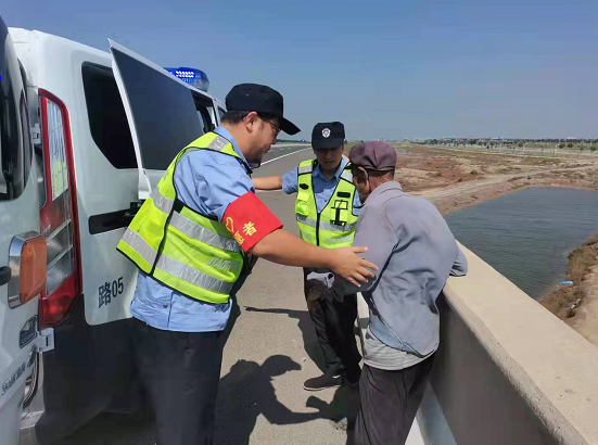 9月8日上午,路管分公司沿海大隊二中隊巡邏至天津方向K294附近時發(fā)現(xiàn)一拾荒老人,老人神志清楚,步履蹣跚,身體狀況不佳,通過老人說話語氣可以斷定是當?shù)鼐用瘢蠼?jīng)長時間多次詢問才確定老人為南排河鎮(zhèn)村民,但暫時無法聯(lián)系上老人家屬。