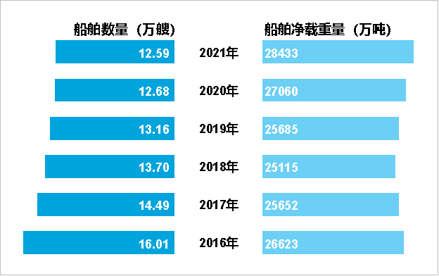 圖5 2016-2021年年末全國(guó)水上運(yùn)輸船舶擁有量