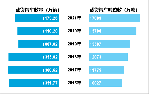 圖4 2016-2021年年末全國(guó)載貨汽車擁有量