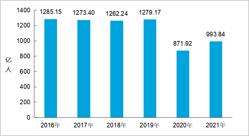 圖9 2016-2021年全國(guó)城市客運(yùn)量