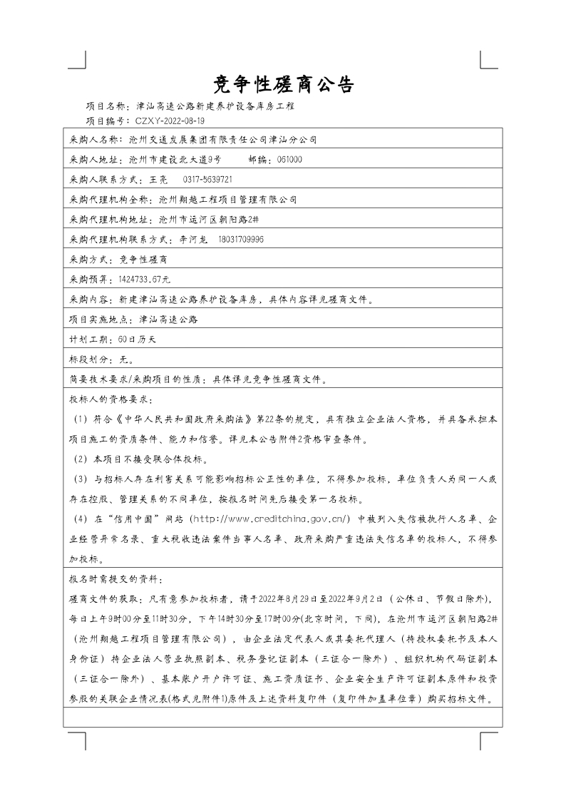 新建養(yǎng)護設(shè)備庫房競爭性磋商公告