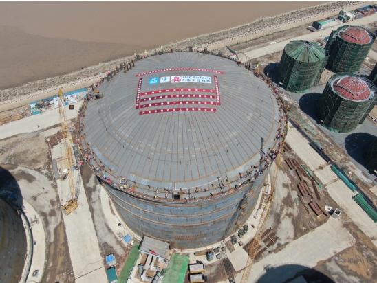 2025年5月11日上午,黃驊港綜合港區(qū)液體化工碼頭工程迎來重要建設(shè)節(jié)點——液化烴庫區(qū)8萬方丙烯/丙烷罐(0306-T-01)罐頂順利升頂。交發(fā)集團(tuán)黨委委員、副總經(jīng)理安國棟,森旭公司董事長鮑衛(wèi)國及各參建單位負(fù)責(zé)人現(xiàn)場指導(dǎo),共同見證這一階段性勝利。